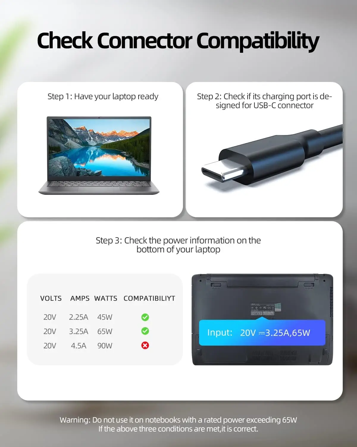 Tension de sortie : 20V / 3.25A