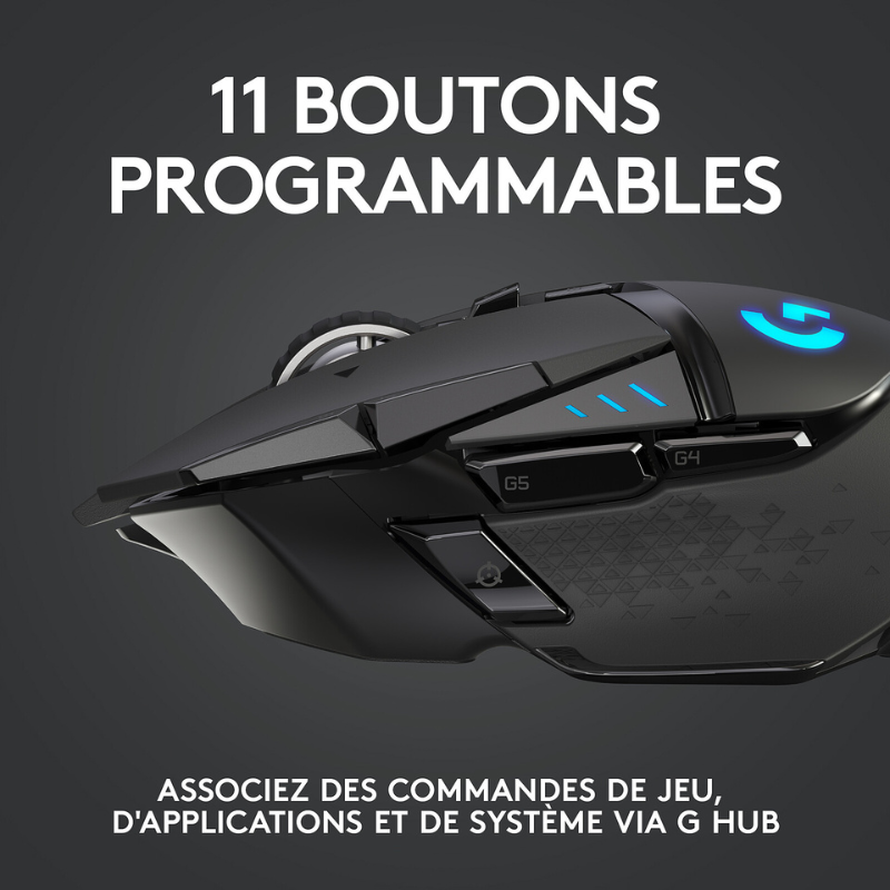Grâce à la technologie LIGHTSPEED, la G502 Lightspeed offre une connexion sans fil ultra-rapide et stable, avec une latence quasi nulle, garantissant une expérience fluide et performante en jeu.